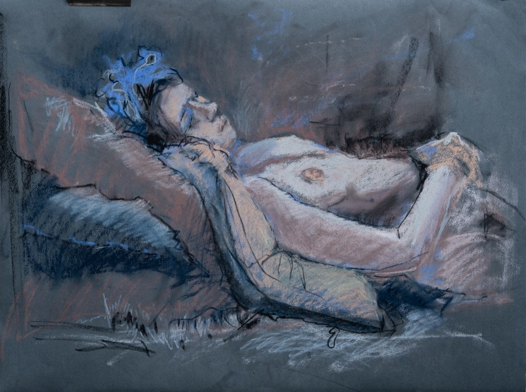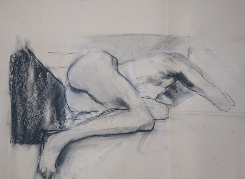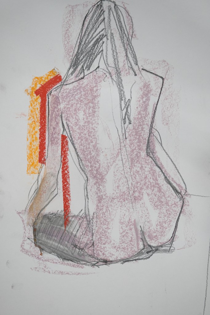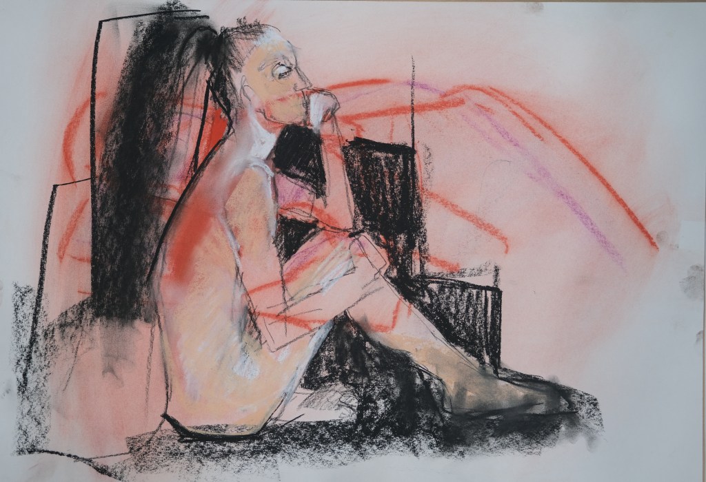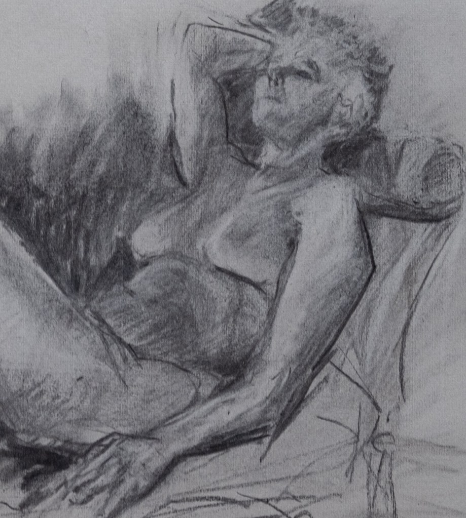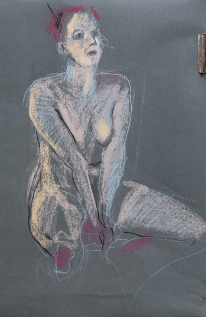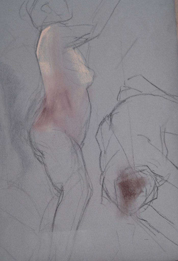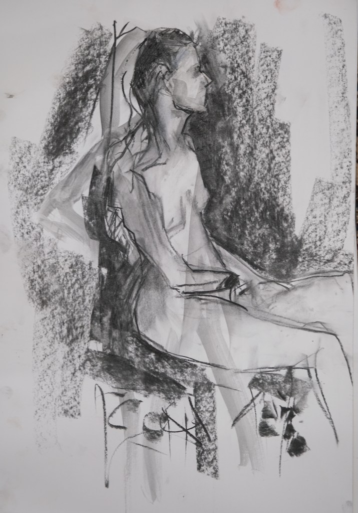 with a day life drawing, one pose for half of the day – it’s possible to trial different materials and approaches. What was the main learning..I did get a bit a sense of ‘eye fatigue so will manage light on my paper better and not look into lights (is this something to do with Glaucoma??). In terms of skills, more eye squintage to really get a grasp on tonal transitions. My focus for at least the rest of the month with the aim of translating that into painting portraits.