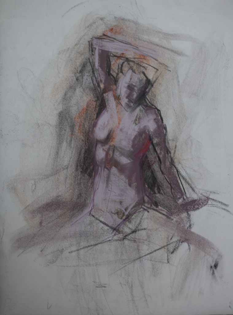 - series of 10×1 min gesture drawings, 2 x 5 min drawings, 2 x 10 mins (break then a 20mins); always start new session with 5 x 2 mins. Have a game plan for a session with a model. Time yourself.