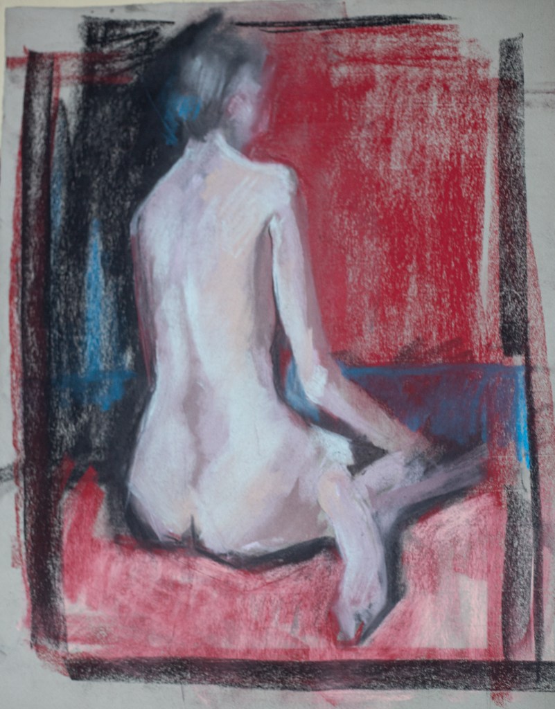 Here’s a record of the work in three blocks mixing durations of studies. Green abstracted figure saw a tangible and more ‘felt’ shift in what I was doing (I got very annoyed with the ‘pretty’ image approach and poses that seemed to me right out of playboy and that created a far more imaginative but truly felt engagement than was previously going on).