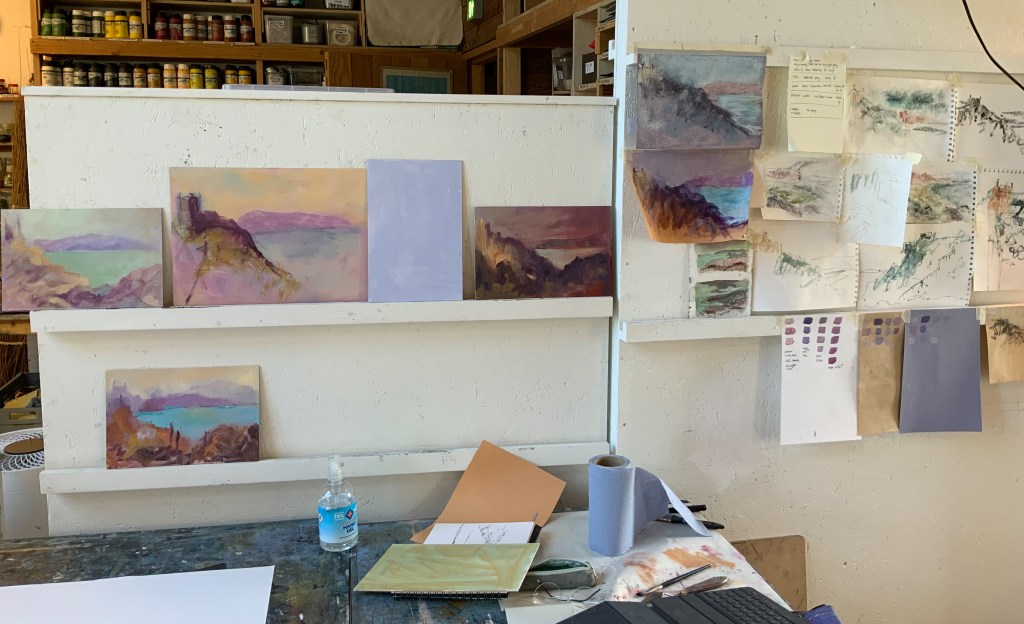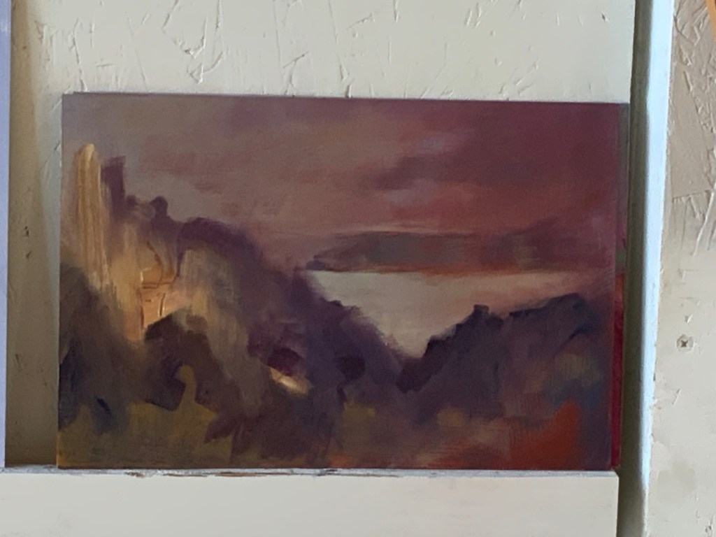 The focus of this unit’s work has been rather split between dissemination and making work. To keep up the momentum and to help widen the visual vocabulary of the painting, I spent three days on a workshop focused on light and landscape, tutored by Tom Rickman – a painter with a very subtle and nuanced approach to colour. The work I produced was rather hesitant as it was a very different approach to what I’ve been using for the Turneresque work. Smaller, more about colour mixing than form and expression. Here are a few images from the workshop.