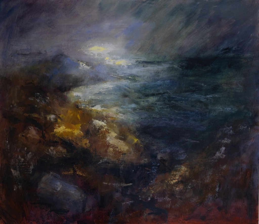 The PZ Studios show also started this week at the Daisy Laing gallery off Chapel St in Penzance. I only have one piece in the show and was required to sit the show for a day. Nicely hung show (with colour as organising principle). On my invig. day – noted that most people who came in with other artists, but also as its Easter week some tourists who did buy small items (cards and small textiles). Learning…effort put in doesn’t necessarily pay off directly but it’s all part of building a profile, creating a network/community to create opportunities to get stuff in the public domain. Don’t book a holiday in April as it’s busy! My piece in the show might also be a bit dark for more domestic contexts. Lighter colours seem in order (see landscapes posts)